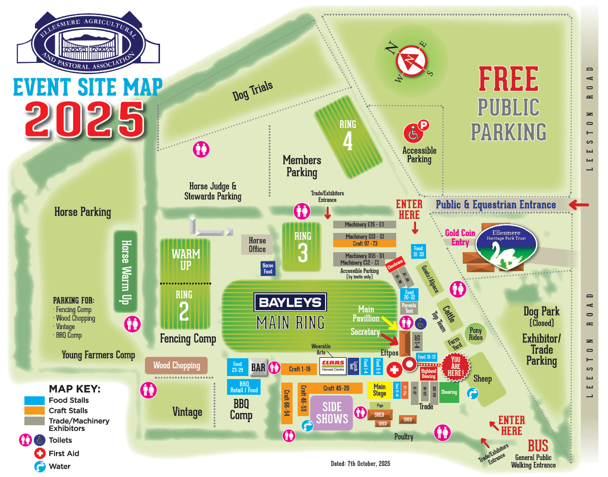 All Trade Exhibitors, Sheep and Cattle exhibitors through the Main Entrance